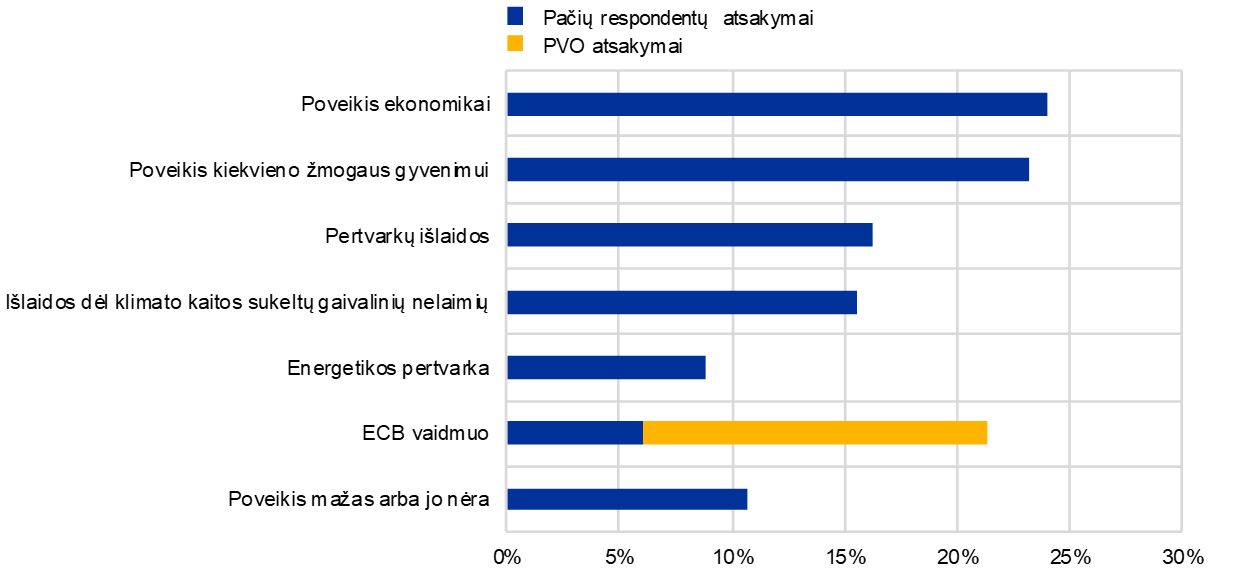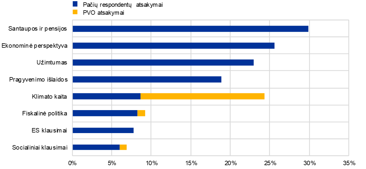 - Kita nemaža dalis respondentų norėtų, kad ECB sutelktų dėmesį tik į kainų stabilumą, o kitus klausimus paliktų spręsti demokratiškai išrinktoms struktūroms, taip pat kad iš naujo įvertintų neigiamų palūkanų normų poveikį ir gerintų kylančių būsto kainų stebėseną.