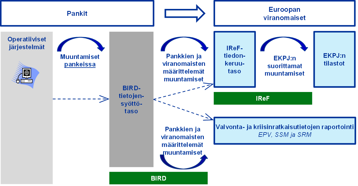 - Ks. EKP:n tiedonanto raportoiville pankeille tilastotietojen keruusta covid-19-tilanteessa, EKP, 15.4.2020, ja EKP:n tiedonanto raportoiville pankeille tilastotietojen raportoinnin määräaikojen pidentämisestä covid-19-tilanteessa, EKP, 29.4.2020.