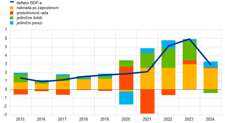 (godišnje promjene u postotcima, doprinosi u postotnim bodovima)
