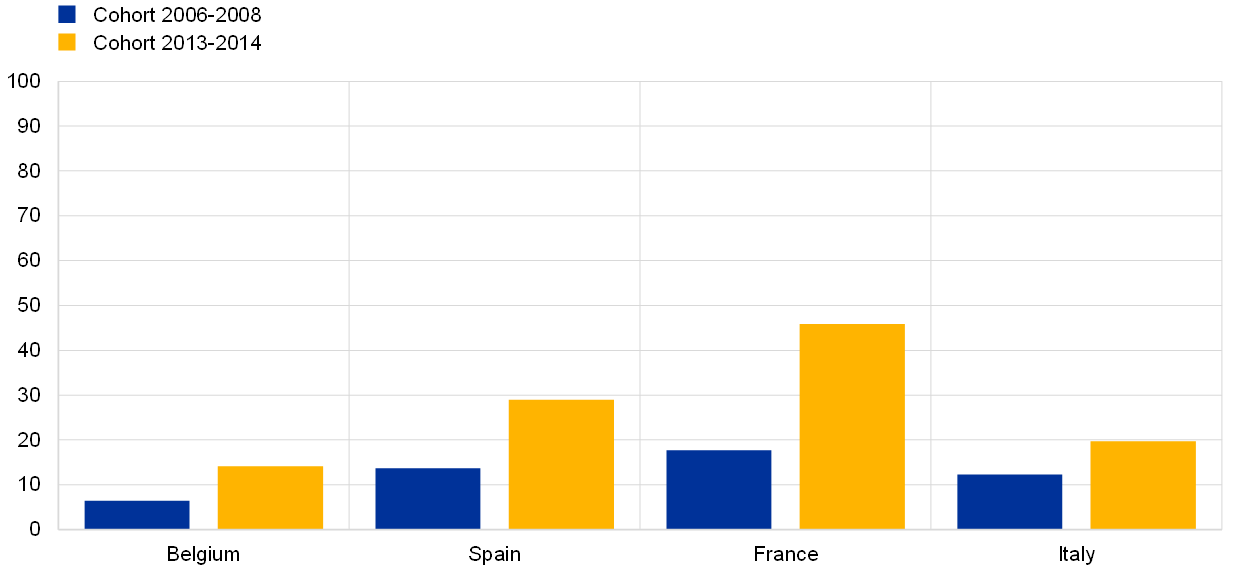 21. The countries covered are Belgium, Germany, Spain, France, Italy and Portugal, over the period 2005-2017. Data are sourced from ORBIS (BvD) and iBACH (firm-level data underlying the Bank for the Accounts of Companies Harmonized), refer to corporations with employees operating in the non-agricultural business sector, excluding the financial sector, and are treated with inverse population weights to improve sample representativeness.