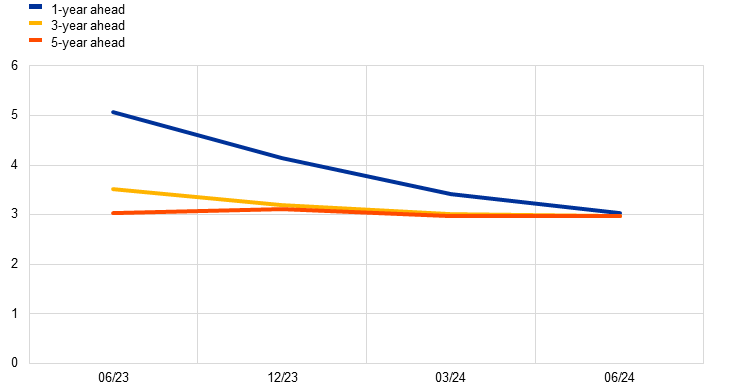 2. The ECB collects information on inflation expectations from households through the Consumer Expectations Survey; from professional economists through the Survey of Professional Forecasters and from market participants through the Survey of Monetary Analysts.