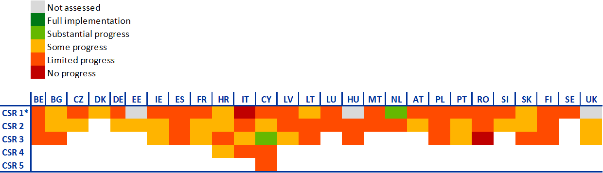 Notes: CSR 1* assessment excludes compliance with the Stability and Growth Pact, which will be assessed by the European Commission later in spring 2019. “Not assessed” applies to cases in which CSR 1 pertains mostly or exclusively to the Stability and Growth Pact.