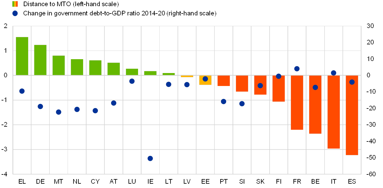 Government debt and the gap between structural balances and MTOs in 2020