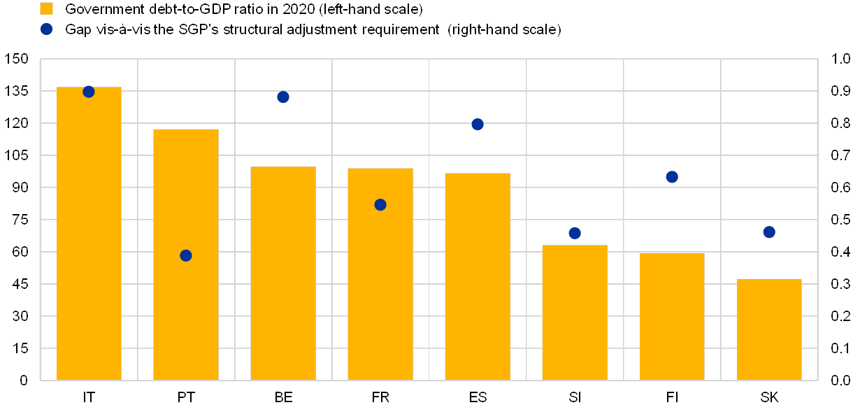 Government debt in 2020 and gaps vis-à-vis the SGP’s structural adjustment requirements in Member States whose draft budgetary plans are assessed as being at risk of non-compliance with the SGP