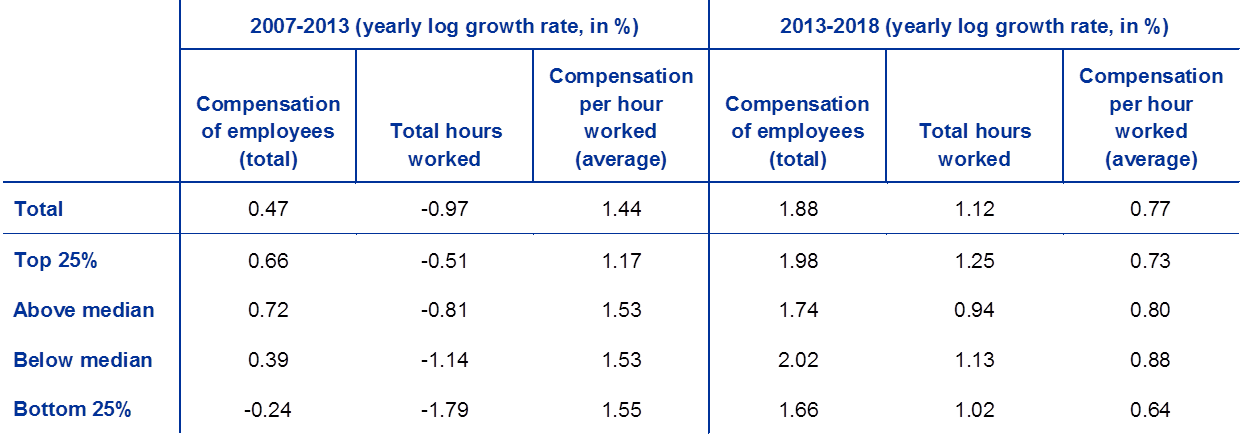 Growth in total hours worked and in compensation of employees across the euro area