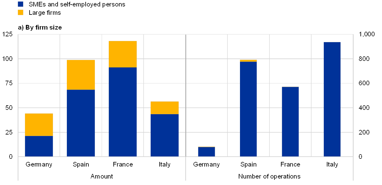 Sources: Kreditanstalt für Wiederaufbau for Germany, Instituto de Crédito Oficial for Spain, Ministère de l'Économie et des Finances for France, Ministero dell’Economia e delle Finanze and Banca d’Italia for Italy, various national authorities for other euro area countries, news sources, Eurostat and ECB calculations.