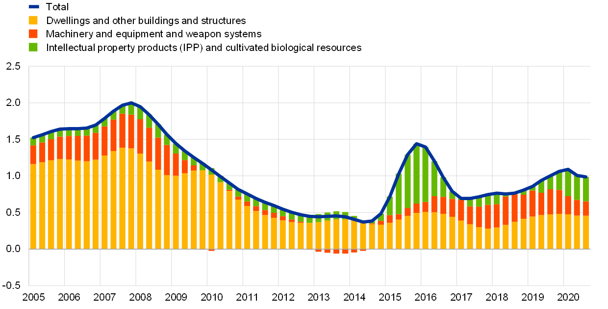 1. In this box, the focus is on both public and private capital stock. However, most of the euro area capital stock and investment are made up of private assets (about 85% for both investment and capital stock).