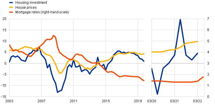 1. For an assessment of euro area housing market developments during the coronavirus (COVID-19) pandemic, see the article entitled “The euro area housing market during the COVID-19 pandemic”, Economic Bulletin, Issue 7, ECB, 2021. For a discussion of housing market risks, see Igan, D., Kohlscheen, E. and Rungcharoenkitkul, P., “Housing market risks in the wake of the pandemic”, BIS Bulletin, No 50, BIS, March 2022.