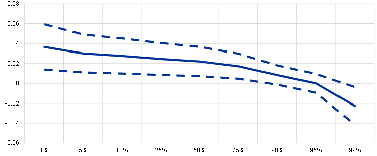 Marginal effects of imports on production in industries with different energy intensities (the higher the percentile, the higher the energy intensity)