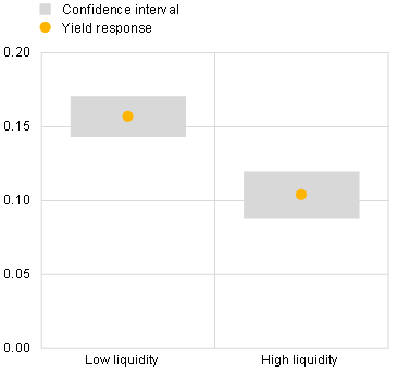 Estimated yield response in other advanced economies to a US monetary policy shock depending on liquidity conditions in the US Treasury market