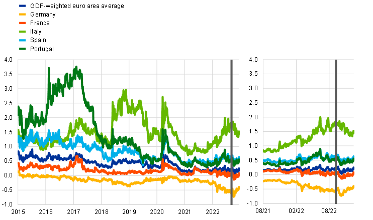 On 22 November 2022 the European Commission released its opinions on the draft budgetary plans (DBPs) of euro area countries for 2023.[30] Owing to the continued application in 2023 of the general escape clause of the Stability and Growth Pact (SGP), the assessment by the Commission followed the practice of the two previous years, focusing on the compliance of the DBPs with fiscal policy recommendations that are more qualitative than quantitative in nature.[31] These recommendations were adopted by the Council on 12 July 2022. At that time, the Council also advised euro area countries to adopt differentiated fiscal policies in 2023, in particular recommending countries with high levels of government debt to ensure a prudent fiscal policy. In operational terms, this means keeping the growth in nationally financed primary current expenditure, net of discretionary revenue measures, below the growth in potential output over the medium term. Euro area countries with low or medium levels of government debt were recommended to ensure that the growth in nationally financed current expenditure is in line with an overall neutral policy stance. In both cases, it was recognised that government expenditure plans would need to take into account the ongoing temporary and targeted support for households and firms via energy-related compensatory measures and for people fleeing Russia’s war of aggression against Ukraine. Euro area countries were also advised to expand public investment for the green and digital transitions and for energy security.[32]