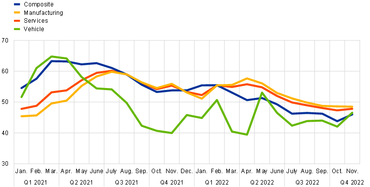Note: The latest observations are for October 2022 for vehicle output and November 2022 for all other items.