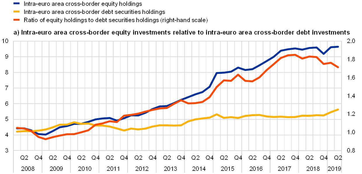As part of its efforts to streamline and focus its publications, the ECB has decided to combine the previous report on “Financial integration in Europe” (last published in May 2018)[1] and the previous “Report on financial structures” (last published in October 2017)[2] into a single report on “Financial integration and structure” in the euro area. This report is designed to focus on structural developments in the financial system of the euro area, and in some cases also of the European Union (EU), and related policy issues. It will be published at a biennial frequency. The new report will, first, pay specific attention to key structural developments such as the process of financial integration, changes in financial structure and the process of financial development or modernisation. Second, it will discuss selected financial sector policies, notably policies related to the European banking union and capital markets union (CMU), and thereby also contribute to the debate on how European Economic and Monetary Union (EMU) can be deepened.