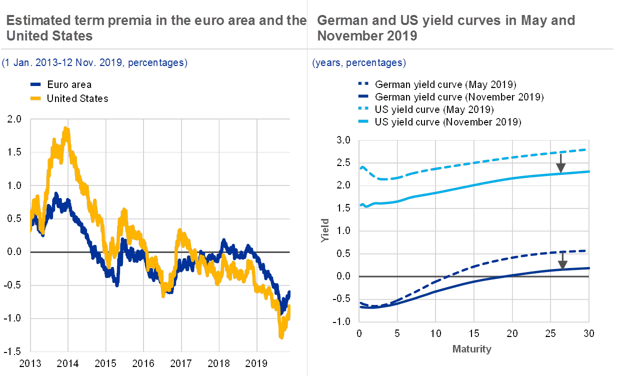 Downward pressure on global bond yields at all maturities has intensified in the United States and the euro area since the May 2019 FSR