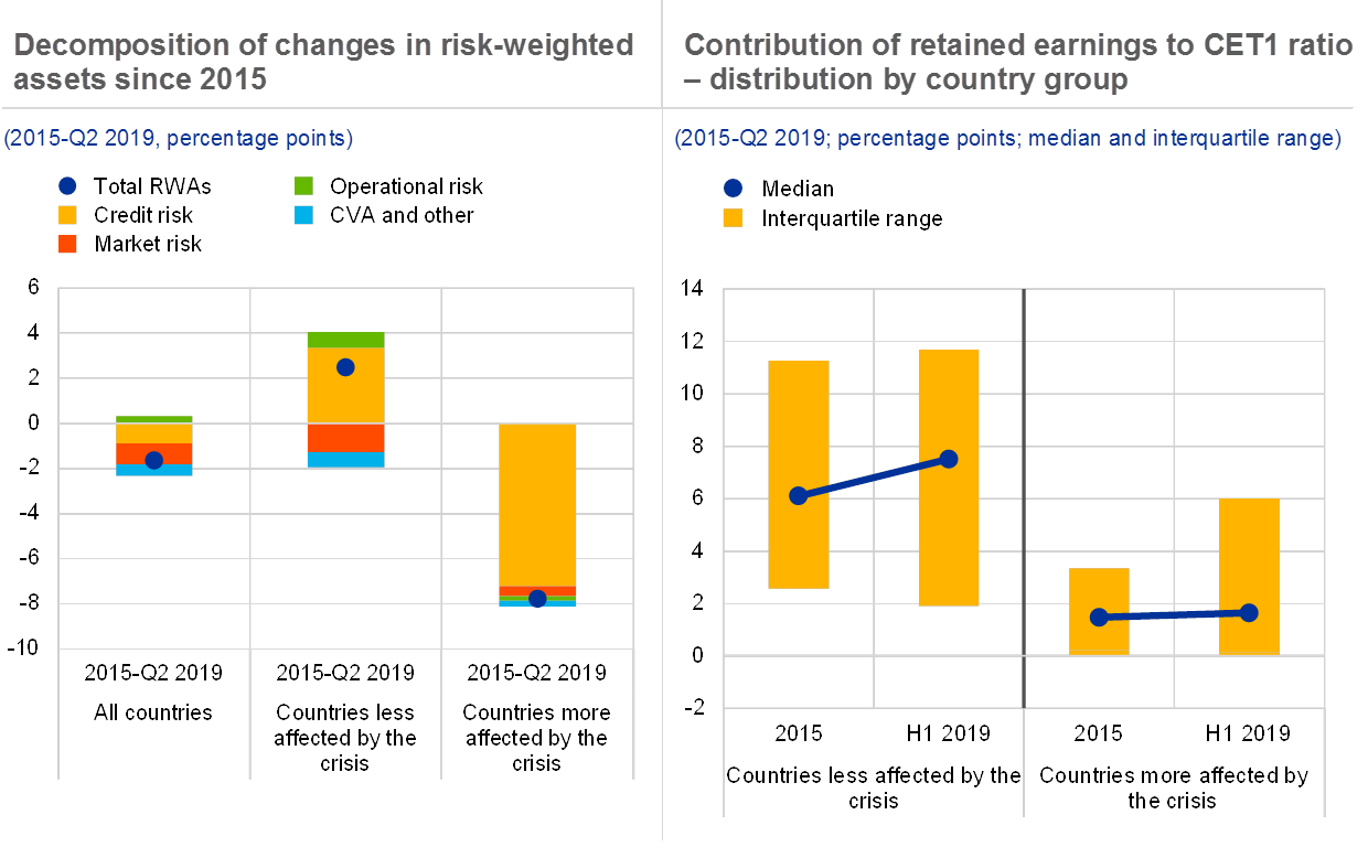 Note: Left panel: The data capture domestic banking groups and stand-alone banks. 2019 figures indicate data for the first half of 2019.