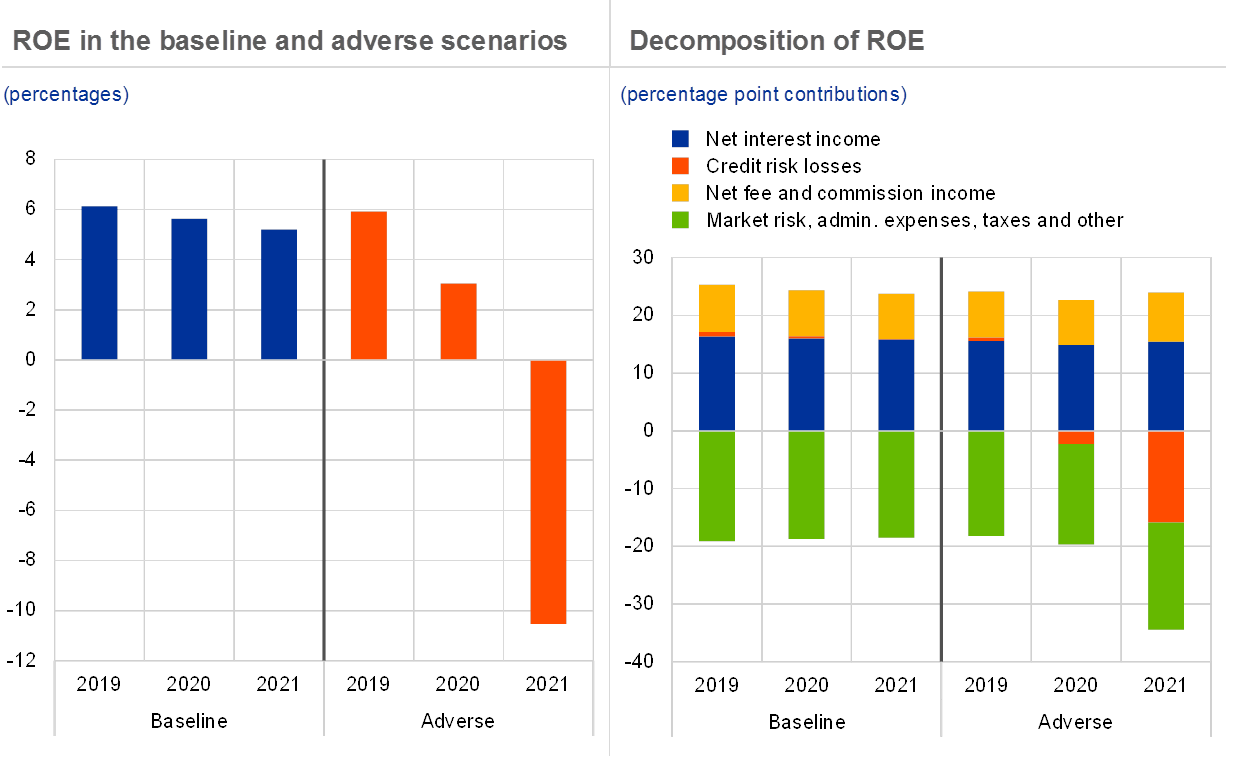 32. These results are not comparable with the EBA 2018 stress-test results due to differences in methodology, scenarios and starting points, as well as the exclusion of operational risk and parts of market risk from this analysis.
