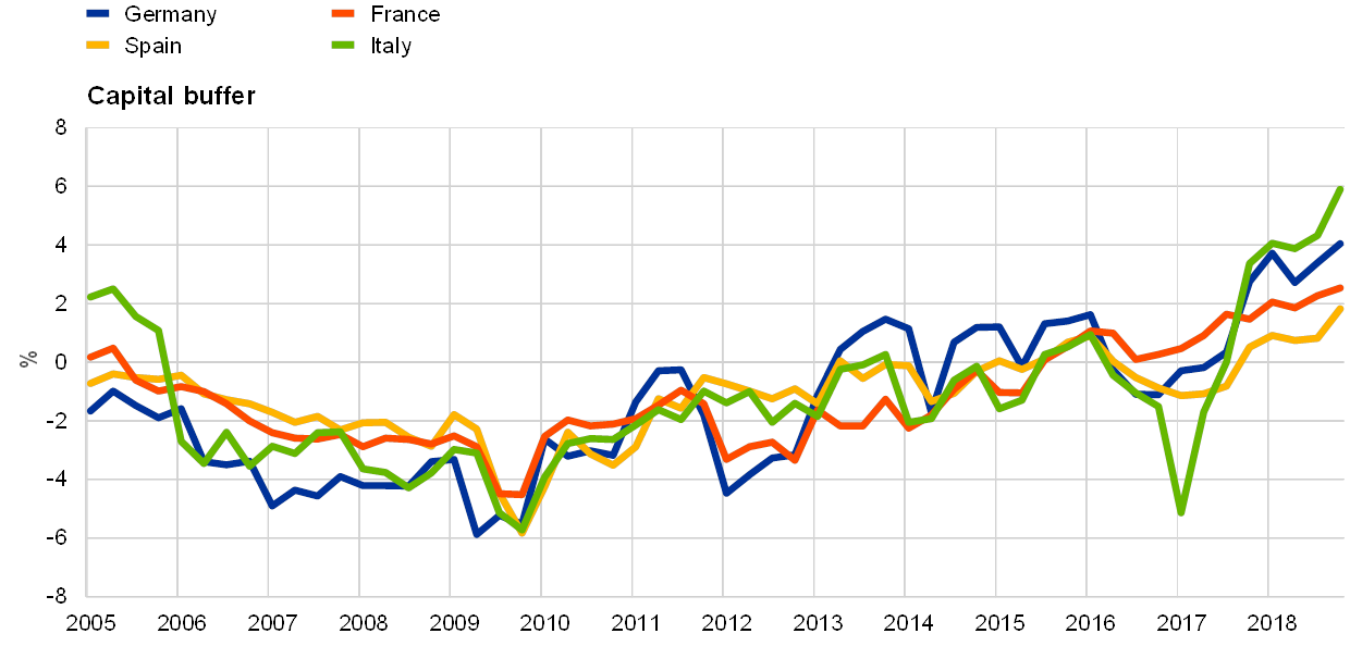 Notes: The capital buffer is defined in percentages. The sample spans the period from the first quarter of 2005 to the fourth quarter of 2018.