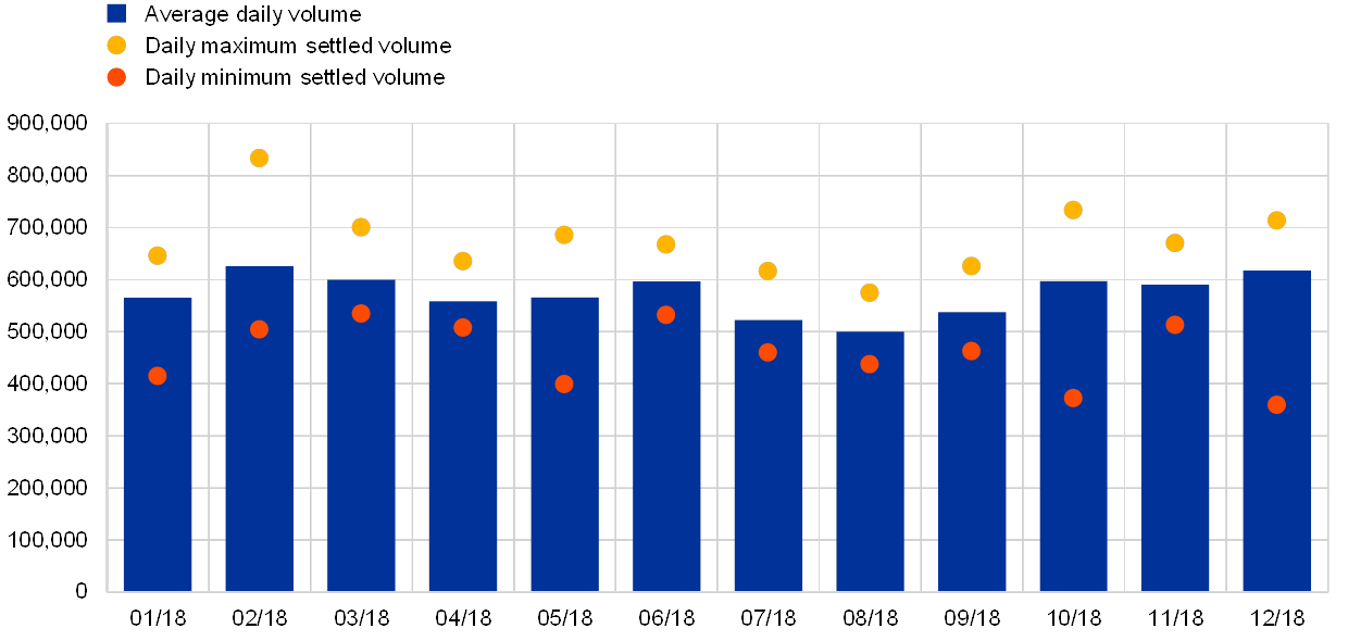 Chart 3 shows the evolution of T2S daily average traffic in 2018 in volume terms.