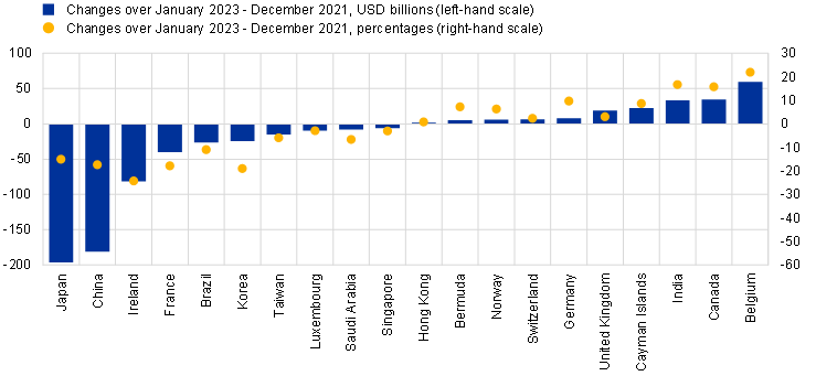 Note: The chart includes the 20 largest holders of US Treasury securities in December 2021.