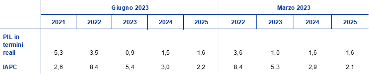 Proiezioni macroeconomiche per l’area dell’euro formulate dagli esperti dell’Eurosistema, giugno 2023