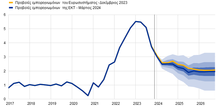 Μακροοικονομικές προβολές εμπειρογνωμόνων της ΕΚΤ για τη ζώνη του ευρώ, Μάρτιος 2024