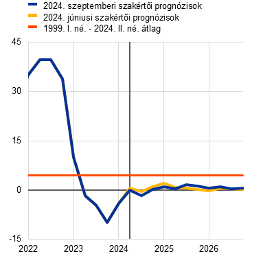Hivatásos előrejelzők felmérése | 2024. július | 0,7 | 1,3 | 1,4 | 2,4 | 2,0 | 1,9 | 2,7 | 2,2 | 2,0 |