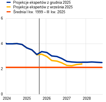Projekcje ekspertów Eurosystemu | grudzień 2025 | 1,4 | 1,2 | 1,4 | 1,4 | 2,1 | 1,9 | 1,8 | 2,0 | 2,4 | 2,2 | 1,9 | 2,0 | |
