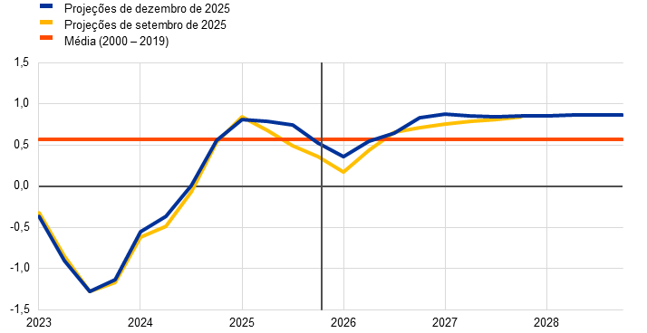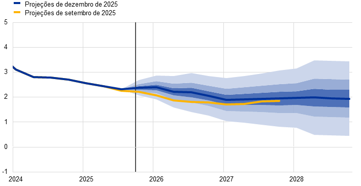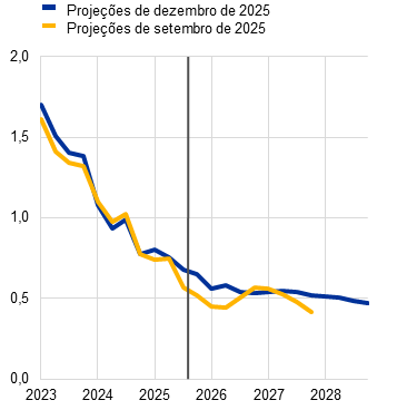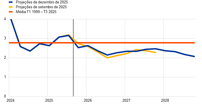 Projeções dos especialistas do Eurosistema | Dezembro de 2025 | 1,4 | 1,2 | 1,4 | 1,4 | 2,1 | 1,9 | 1,8 | 2,0 | 2,4 | 2,2 | 1,9 | 2,0 | |