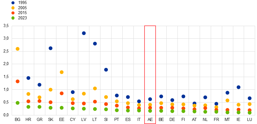 Ver “Trends in carbon intensity and the macroeconomic role of the EU Emissions Trading System”, no sítio Web da Comissão Europeia.