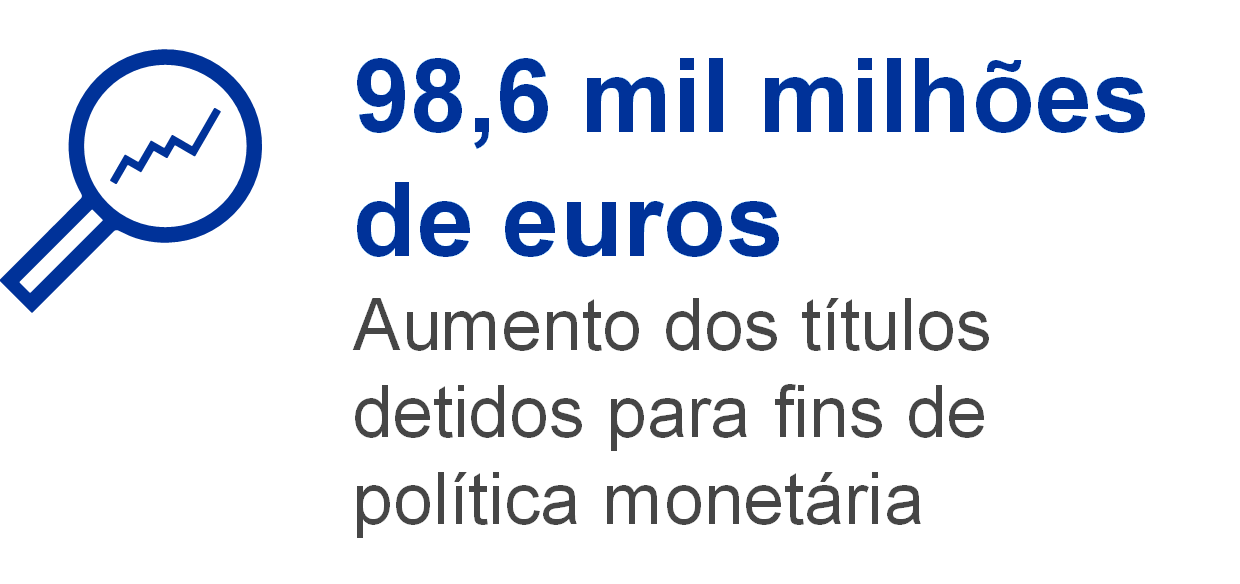 Os títulos detidos para fins de política monetária denominados em euros constituíam 61% do total do ativo do BCE no final de 2020. Sob esta posição do balanço, o BCE detém títulos adquiridos no quadro do programa dos mercados de títulos de dívida (securities markets programme – SMP), dos três programas de compra de obrigações com ativos subjacentes (CBPP1, CBPP2 e CBPP3), do ABSPP, do PSPP e do PEPP.