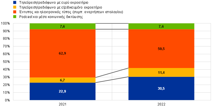 Σχετικά με τις επιπτώσεις του πολέμου στον πληθωρισμό των ειδών διατροφής, βλ. το πλαίσιο με τίτλο “Η απότομη άνοδος του πληθωρισμού των ειδών διατροφής στη ζώνη του ευρώ και οι επιπτώσεις του πολέμου Ρωσίας-Ουκρανίας”, Οικονομικό Δελτίο, Τεύχος 4, ΕΚΤ, 2022.