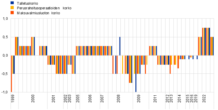 Euroalueen inflaatio kiihtyi 8,4 prosenttiin vuonna 2022 edellisvuoden 2,6 prosentista. Tämä johtui pääasiassa energian ja elintarvikkeiden hintojen noususta Ukrainassa käydyn sodan myötä. Aiemmat tarjontakapeikot, koronapandemian takia patoutunut kysyntä sekä energian hinnan noususta johtuvat korkeat tuotantopanoskustannukset voimistivat hintapaineita useilla talouden toimialoilla. Vuoden alkupuoliskolla euroalueen talouskasvu oli vahvaa erityisesti palvelusektorin saadessa vauhtia pandemiarajoitusten päättymisestä, mutta sen jälkeen kasvu hidastui pitkälti Ukrainan sodan vaikutuksesta.