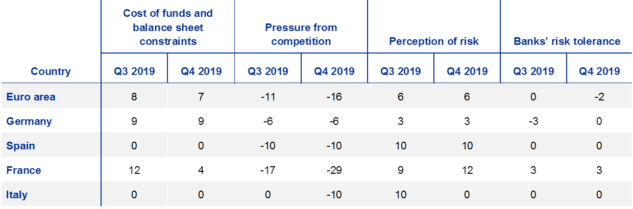 Looking at the four largest euro area countries, credit standards for loans to enterprises tightened in Spain and France in the fourth quarter of 2019, while they remained unchanged in Germany and Italy.