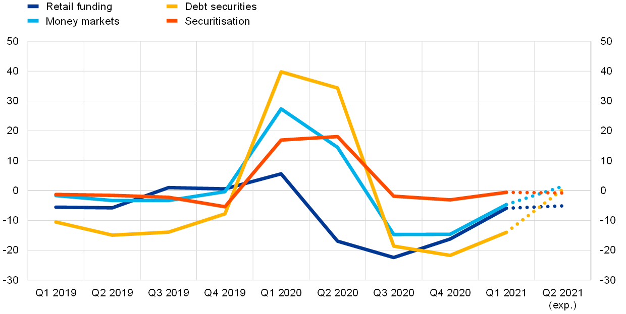 Looking ahead to the second quarter of 2021, euro area banks expect their access to retail funding to continue to improve, while they expect access to wholesale funding to remain broadly unchanged.
