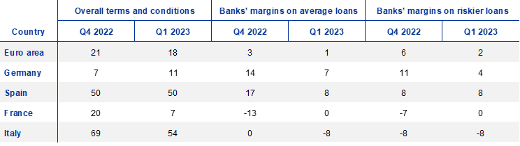 In the assessment of survey balances for the euro area, net percentages between -1 and +1 are generally referred to as “broadly unchanged”. For country results, net percentage changes are reported in a factual manner, as differing sample sizes across countries mean that the answers of individual banks have differing impacts on the magnitude of net percentage changes.